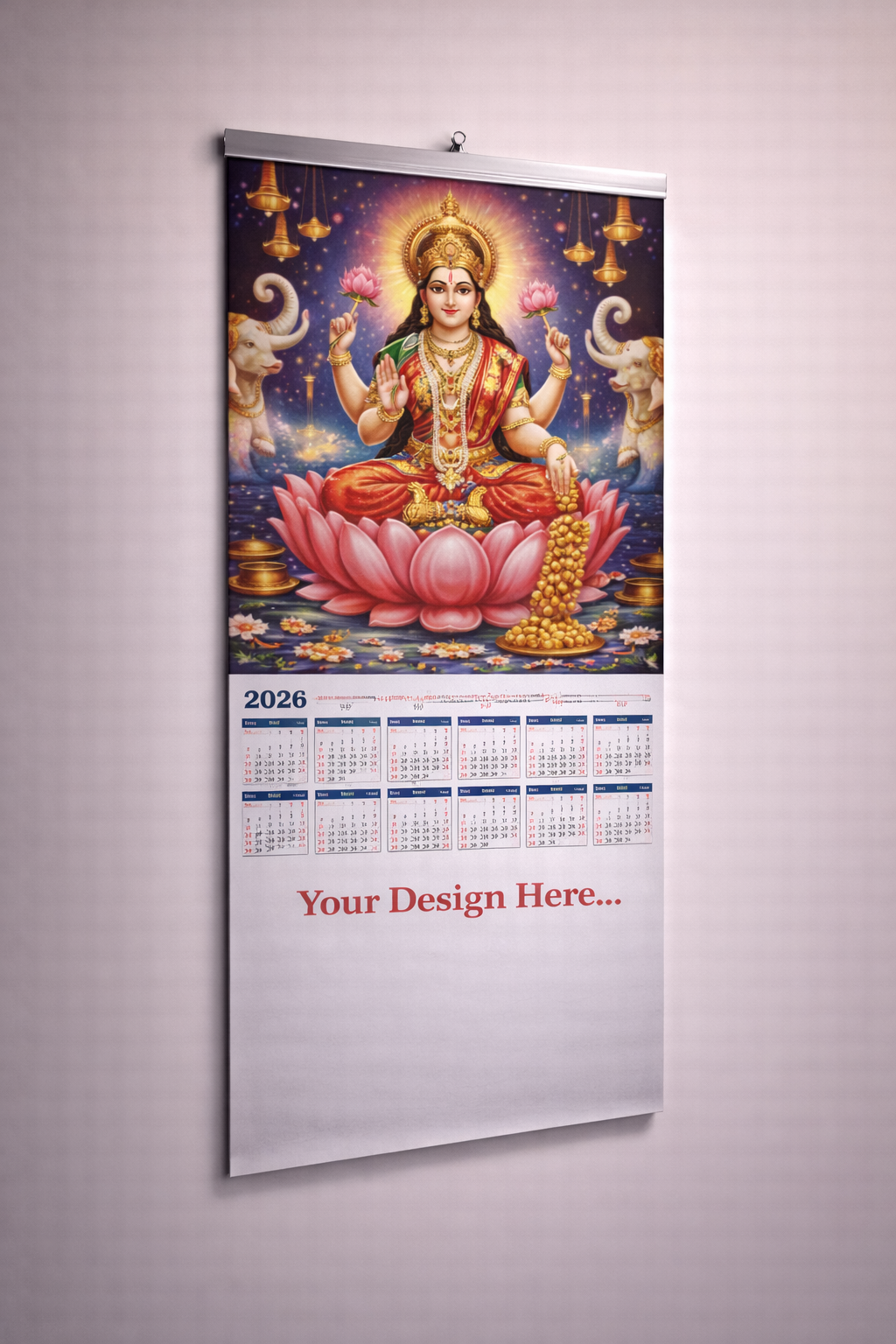 श्री लक्ष्मी माता पिक्टोरियल वॉल कैलेंडर 2026 Size: 10.5 × 21 इंच